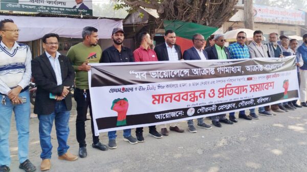বরিশালে সাংবাদিকদের মানববন্ধন ও প্রতিবাদ সমাবেশ