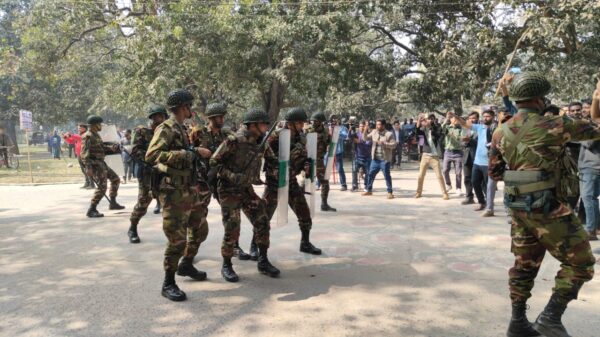 চাঁপাইনবাবগঞ্জে নির্বাচন বানচালের অপচেষ্টা প্রতিহতে যৌথ বাহিনীর মহড়া অনুষ্ঠিত