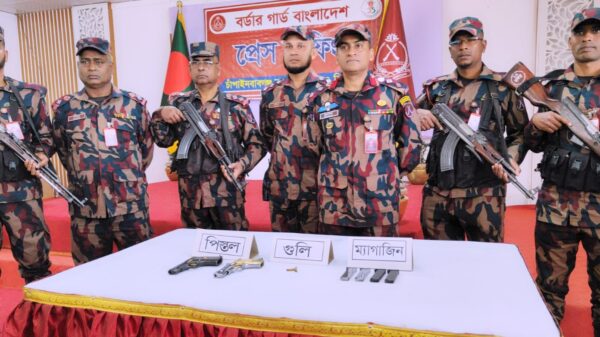 চাঁপাইনবাবগঞ্জে ৫৩ বিজিবি’র অভিযানে ০২টি বিদেশী পিস্তল, ০৪ টি ম্যাগজিন ও গুলি ৩ রাউন্ড জব্দ