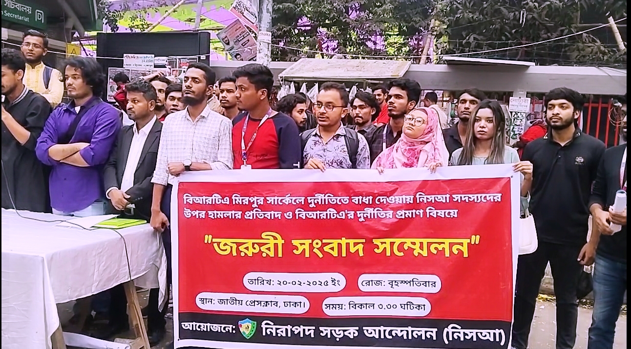 বিআরটিএতে গিয়ে হেনস্থার শিকার (নিসআ) সদস্যরা! সন্ত্রাসীদের বিরুদ্ধে মানববন্ধন…… জাতীয় প্রেসক্লাবে