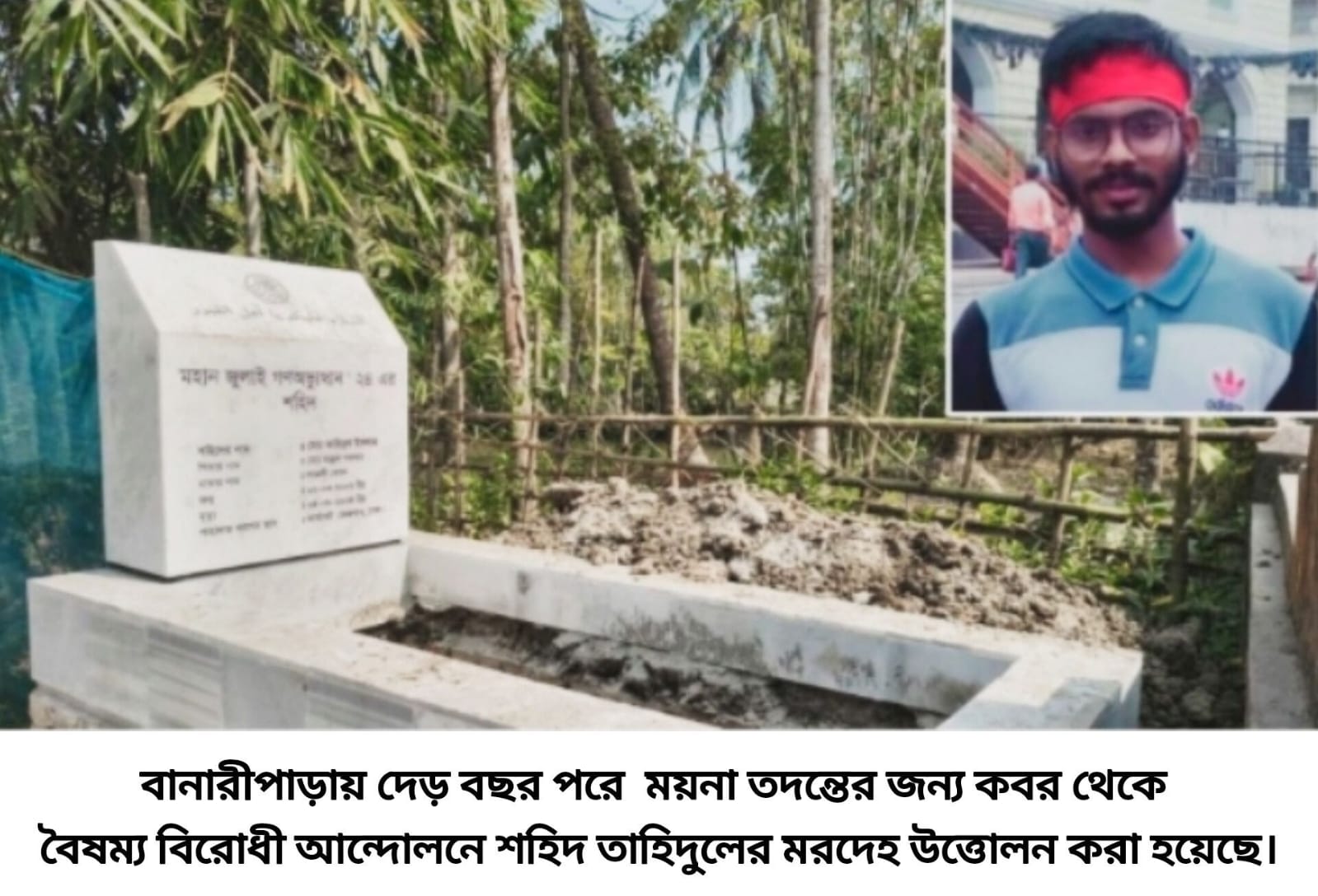 বরিশালের বানারীপাড়ায় ১৮ মাস পরে বৈষম্যবিরোধী ছাত্র-জনতার আন্দোলনে শহিদ তাহিদুল ইসলামের (২১) মরদেহ ময়না তদন্তের জন্য কবর থেকে উত্তোলন করা হয়েছে।
