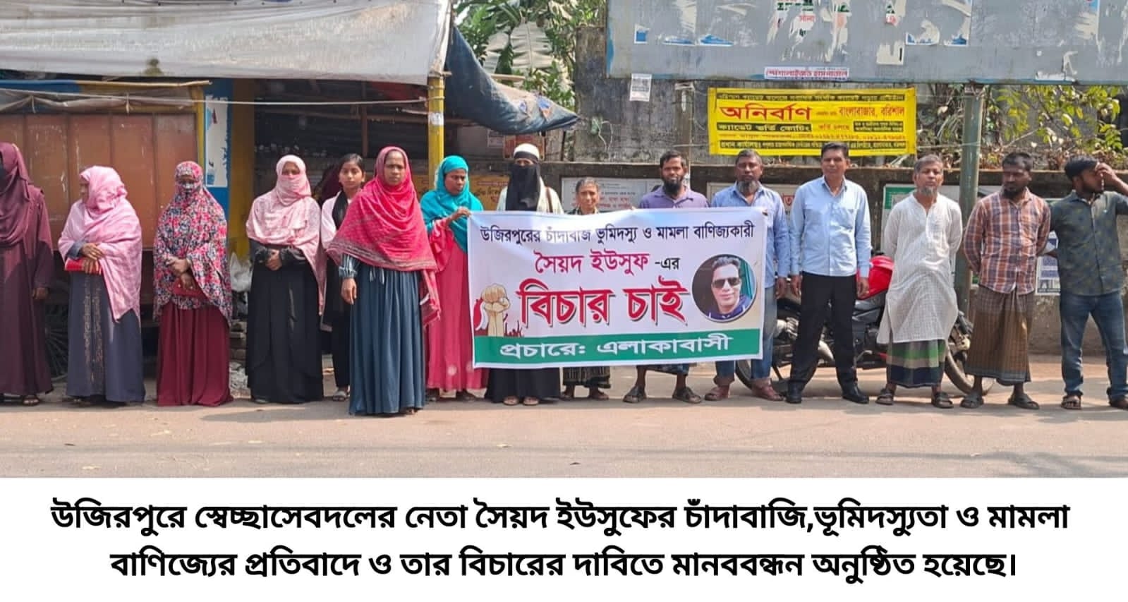 স্বেচ্ছাসেবক দল নেতার চাঁদাবাজি মামলা বাণিজ্যের বিরুদ্ধে গ্রামবাসীর মানববন্ধন