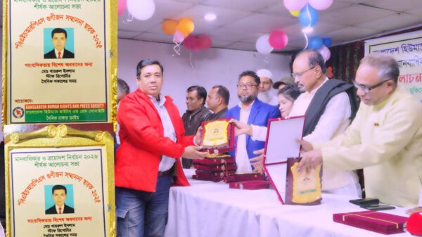 স্টাফ রিপোর্টার: বাংলাদেশে মানবাধিকার ও গণতন্ত্রের জন্য সৎ ও নির্ভীক অনুসন্ধানী সাংবাদিকতার অন্যতম প্রতীক হিসেবে এবারে খায়রুল ইসলামকে মানবাধিকার ও গণতন্ত্রে নির্ভীক কলম” সম্মাননা স্মারক প্রদান করা হয়েছে। এই সম্মাননা