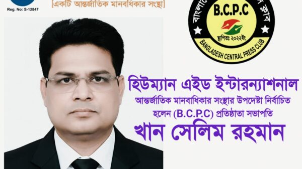 নিজস্ব প্রতিবেদক : বাংলাদেশ সেন্ট্রাল প্রেস ক্লাব (B.C.P.C)-এর প্রতিষ্ঠাতা সভাপতি, বিশিষ্ট সাংবাদিক ও মানবাধিকার কর্মী খান সেলিম রহমান আন্তর্জাতিক মানবাধিকার সংস্থা এর উপদেষ্টা পরিষদের স্থায়ী সদস্য হিসেবে নির্বাচিত হয়েছেন। তাঁর