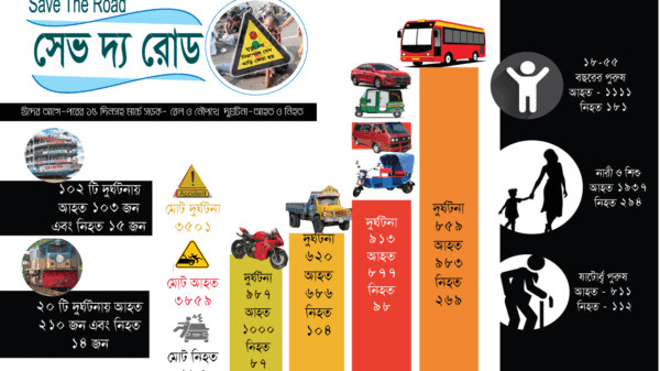 নিজস্ব প্রতিবেদক: ঈদের আগে-পরের ১৫ দিনে ৩৫৮ সহ মার্চে সড়ক-রেল ও নৌপথে ঝরেছে ৫৮৭ জনের প্রাণ। গবেষণা-সচেতনা ও স্বেচ্ছাসেবি সংগঠন সেভ দ্য রোড-এর মহাসচিব শান্তা ফারজানা আরো জানান- ১৬ থেকে